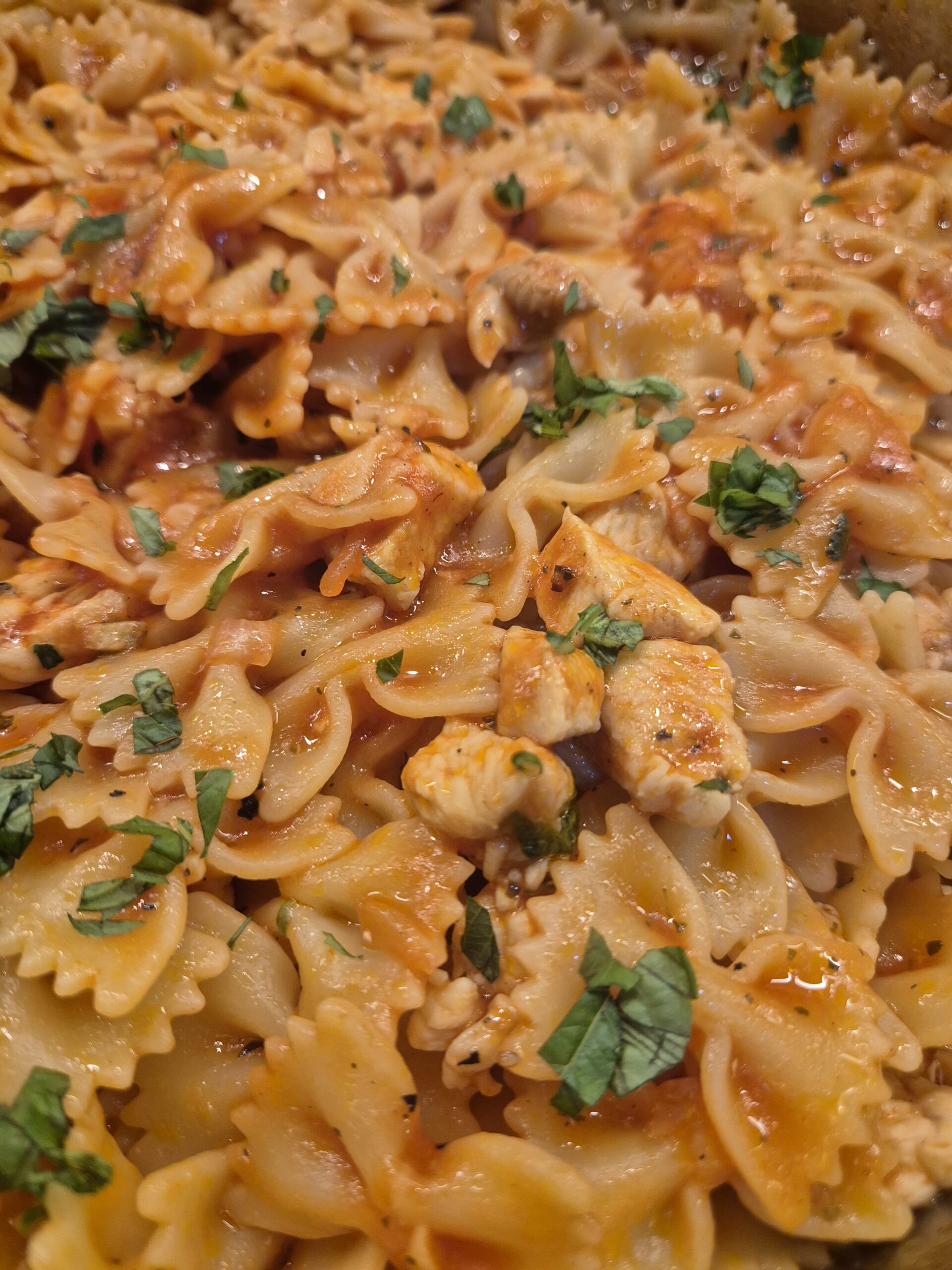 Ekkor jött el a pillanat, amikor megpesszentettem egy dobozt sört, mert már tikkadoztam. Amíg rotyogott a paradicsomos cuccban a csirke, főtt már a farfelle a lobogó vízben, amit időközben fazékba öntöttem és erőtelejesen megsóztam, szép nyugodtam elkortyoltam.